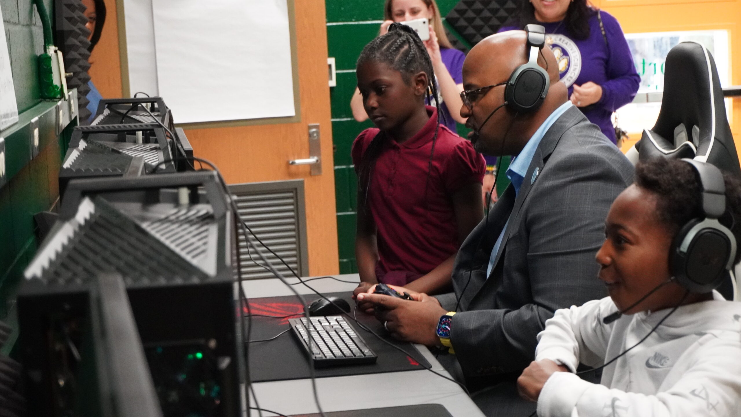 Following the ribbon cutting, there was a tour of the lab, during which students and teachers were able to get a first-hand look at the facility and the equipment. Guests were also able to participate in gameplay and get a feel for what it would be like to use the lab on a normal basis.